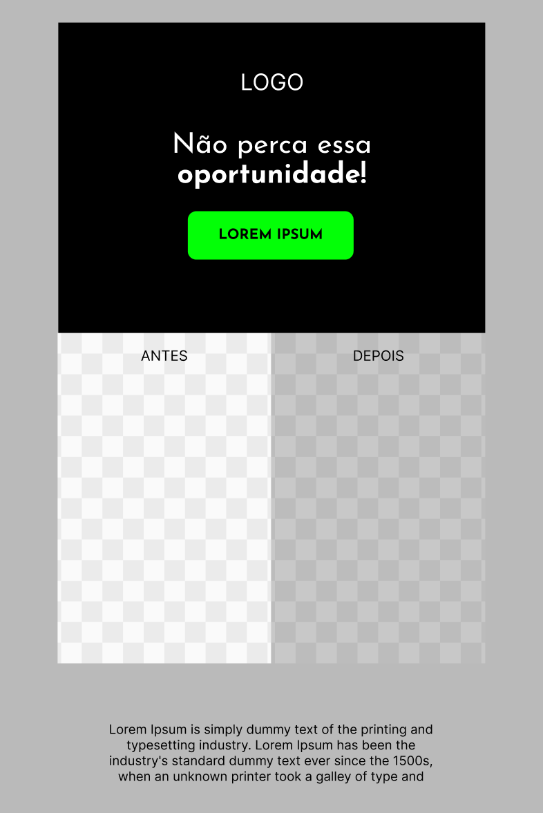 Está é uma ótima seção introdutória que você pode usar para apresentar um antes e depois do resultado de um cliente que utilizou seu produto.